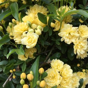 木香薔薇🌹モッコウバラ 花言葉🥀あなたに ふさわしい人 トゲがなく扱いやすい 創造性と活力を刺激する 活気に満ちたエネルギーを呼び込む おはようございます🎐🍉 高温🥵、ゲリラ雷雨⛈️、台風🌀、 みなさま、どうぞお気を つけてお過ごしください☺️