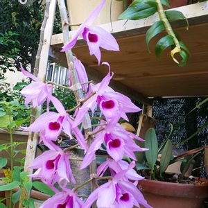 今年もランの花が咲きました🥰⤴️🩷🧡💖 色は違うけれど どちらもデンドロビウムの仲間😉✌️