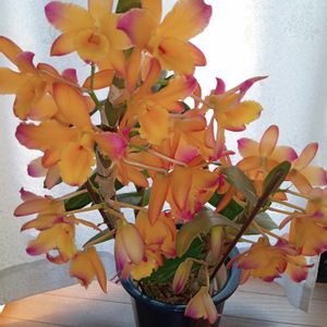 3年目の洋ラン🧡💛デンドロビウム⤴️ 今年も咲いてくれました😆👏 逆光で📷あまりキレイに撮れなくて😂ごめんね🙇⤵️