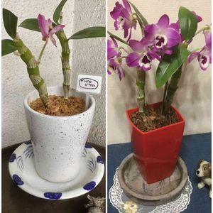 デンドロビウム 、超 値下げ品 で 最後の 1 つを 引き取って、少ない お花🌸 でしたが、それでも 1 ヶ月 楽しみました ❗️ 派手な 赤い鉢に 2本 、詰め込んでありましたが、あまりにも窮屈 で、花🌸も 終わったので 植え替えてやりました〜 ❣️ 洋ラン類は 苦手なので、あまり 買わない事に しているのですが 、切り花💐 を 買っても 高いので、お安く 購入出来た デンドロビウム 東山 💕 ご縁が あったようだから 大事に 栽培してみます ‼️ ^_^