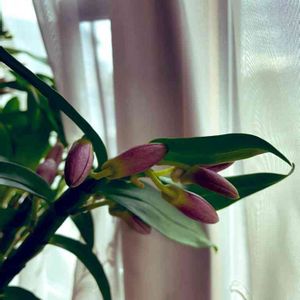 今朝、カーテン開けた時に、 気付きました。 つぼみが、ふくらんできていました。 😁 これ、 『デンドロビウム』 です。