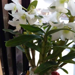 今日のお花🌸デンドロビウム ノビレ 夫が放置? お世話? している、 数少ないうちのひと鉢。 これは2月のpicです。 そろそろ、花芽が見えてくる頃ですね。
