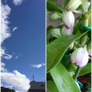 去年まで咲いていたデンドロビウムと空です。 殆ど世話をしていなくて、夏に消えてしまいました。 勉強のやり直しですね。🧐 毎年勝手に咲くものだと思っていたので、可愛そうな事をしました。