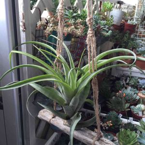 T. sprengeriana 'Red Leaf' 金網と鉢底が合わなくて倒れそうだったので吊るした。 のはいいんだけど落ちないか心配(笑) マクラメな…不器用な私には無理じゃ😂 あ、レッドリーフは勝手に呼んでるだけです(笑)