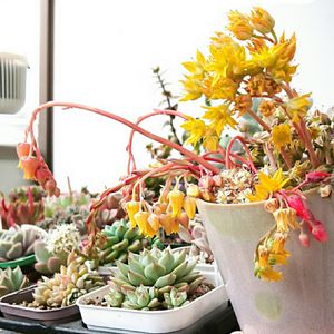 今朝の1枚📸 今の時期、花芽がビュンビュンで撮影難しくないですか?カット✂️すればいい話だけども😂 原種ザラゴーザさんのお花は、外が赤で内側が黄色。とっても可愛いです🏵 明日から久々の2連休〜🙌✨ 今コロナで外出自粛期間なので、2日間お家で多肉眺めて元気チャージしようと思います🙌🙌🙌