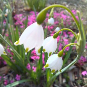 こんばんは✨ スノーフレーク🤍と芝桜🌸 鈴のような形がかわいい💞