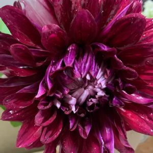 雨に濡れた1番花の大輪ダリア、この後大きく開きました🍀 後が控えているので 撮影後切り花に💕 今年はいくつ咲くのかなぁ〜♪