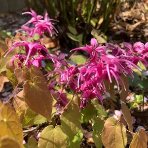 🌿鶏尾菖蒲🌿 1. ケイビアヤメも元 気に顔を出して来ま した 🌿💙💙💙 2〜3. 碇草(夕映) 夕映えらしい濃色赤 紫色の花を咲かせて くれました❤️💜 4. 姫リュウキンカ 黄色と白の花が混ざ り合って咲いていま す🌱🤍🧡🤍🧡 5. ユキヤナギ 寂しく咲いています 🌿🤍🤍🤍