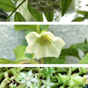 ホヤ セブンスターに 花芽が ちらほら✨ この蕾だけ セブン7じゃなくエイト8 だわーー✨ 真ん中は ホウズキのお花‼️ カット苗購入で 成長早いー💦 下は ミルキーウェイのお花💕 鉢に モリモリさせたい‼️ これは 地植えダメかな〜?