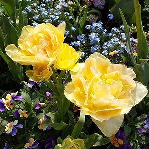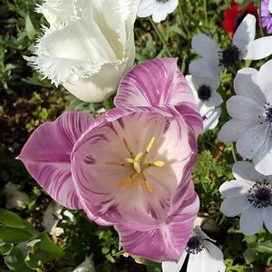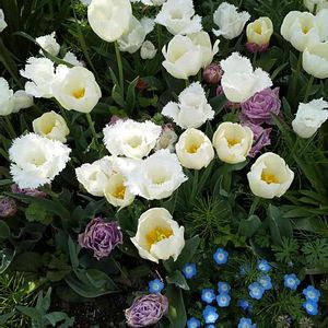 2種類の白いチューリップがめちゃくちゃ可愛いかった💕 右下のネモフィラもたくさん咲いていました! 可愛いと可愛いの共演😊