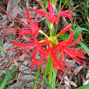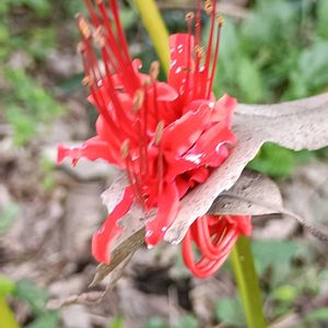 ヒガンバナ ??? これは・・・ 落ち葉🍂の中央から ヒガンバナが 顔を出して咲き始めて います。 植物の力強さ・生命力を 感じる瞬間でした。 o(^-^)oワクワク٩(๑❛ᴗ❛๑)۶
