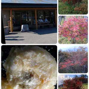 右側の写真は、霧降高原の紅葉です。まだ、紅葉の始まりでしたが。 車を停めて写真を撮る場所もなく、 私は足を伸ばしてないと膝が痛むので、後ろの席に座っていたので、車の中からも、写真が撮れませんでしたが、なんと、霧降高原から、中禅寺湖が見えました。それは、山のなかに、大きな池が浮かんでいるかのように見えました。 栃木に住んで30年以上経ちますが、この景色を見たのは、初めてです。 霧降高原には、いつも、別のルートを通っていましたから。🍀💘💝 左上は、日光市の挽きたて、打ちたて、湯がきたての三たて蕎麦屋さんです。 平日の13:30でも、並び待ちの人たちで、溢れていました。 県外からも沢山の車が来ていました。🌟 左下は、日光の揚げ湯葉饅頭です。 熱々の揚げたて饅頭も、とっても美味しかったです。😋