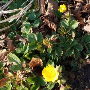 これはヘビイチゴで合ってますか😲❔ キジムシロっていう雑草にも似ている様な🤔葉っぱが違う様な…🤔 『ヘビイチゴ』で合っていました🎵