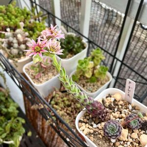 最近お迎えしたパシフィックグレースさん。 かわいい小苗がでてきました🙌 ランナーが伸びてポンポン持ってる。かわいい💕