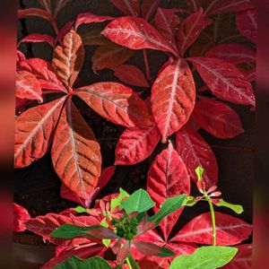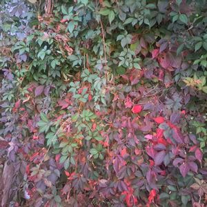 ヘンリーヅタの紅葉🍁 半日陰の場所のせいか、あまり真っ赤にはならないウチのヘンリーヅタ🍁🍁🍁 今年も蛾の幼虫に食べられてわずかに残りました🍁