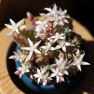 ★ポトシヌム どうも♪ ちょいと仕事が立て込んでしまい、 2日投稿サボってしまったバカ野郎です😵 土日は横浜イベントでしたね‼️ ちっとも行けなかったですけど😭 本日はポトシヌ(ナ)ム♪ ポトシウムやポスティムなどの名前で、 流通しているセダム ディフス(サ)ムの一型です。 正式名は「ディフスム 'ポトシヌム'」 メキシコのサン・ルイス・ポトシ州原産なので ポトシヌムという名称が付いています✨ ディフスムには2種が知られており、 通常のタイプはミルキーウェイと呼ばれてるタイプで、 ポトシヌムは大型になるタイプの位置づけのようです🤔 ・ミルキーウェイで流通。ポトシヌムより小型 ⇒セダム ディフスム ・ポトシウ(ナ)ム、ポスティムで流通。大型 ⇒セダム ディフスム 'ポトシヌム' どちらも冬はピンクに紅葉し、 大きさ以外に花も構造的に大差ないので、 ポトシヌムは基本種の多倍体、つまり、 基本種より染色体数が多いタイプとされています。 小難しい話はさておき、 ミルキーウェイで流通している中にも、 育ててみたらポトシヌムだったってことがあります💦 市場ではちゃんと区別されていないようで、 ピンクに紅葉するからミルキーウェイ!イエーイ!✨ みたいな感じなんでしょう(笑) 葉っぱの形とかよく観察すると微妙に違うんですけど…😅 また、「セダム ディフサム」の名で、 パリダム系のものが売られていますが、 紅葉こそするものの、全体ピンクにはなりませんので、 ご購入の際はお気をつけください😑 -∴-∵-∴-∵-∴-∵-∴-∵-∴-∵-∴- Sedum diffusum 'Potosinum' セダム ディフスム 'ポトシヌム' 和名 不明(情報募集中♪) 別名 ポスティム ポトシウム ポトシナム ディフサム シノニム Sedum potosinum