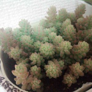 おはようございます😃 やっとお天気になりました⁉️ 多肉ちゃん達を育てている私にとって、 たった1日でも雨や曇りというのは 長いトンネルを潜っている気分です↘︎ さて、今朝は昨日気付いたセダム寄せの ひと鉢。 可愛いモリモリ感を以前もご覧頂きましたがこれが今日のお姿✨。 モリモリを通り越して可愛く垂れ下がってくれています💕😍。 ボトシウムとブレビフォリュームをゆったりと寄せ、隙間に、たまたちぎれてしまったフクリンちゃんを隙間にポンと置いておいただけで良い味がでちゃいました✨ ポトシウムは立木タイプかと思いきや伸びると垂れ下がり、小さな花が沢山つく、 たいそう可愛い子でございます。 さてさてこの混雑状態での夏越しは無理なんですよねー。 解体したく無いな〜〜〜