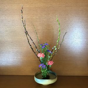 本日のいけばなのお稽古 先月は都合をつける事ができず、一度もお稽古を受けることができませんでした。週末の研究会に向けて、久しぶりのいけばなのお稽古。 日々楽しく花をいけていても、お稽古を受けると、自分の日々の花は、花と真剣に向き合っていないなーと気付かされます。 いけばなに限った事ではありませんが、人に教えを乞う習い事というのは、本質を知り、物事を深く楽しむ事に繋がり、人間的にも器がひろがる事だと思います。 本日もお稽古ありがとうございます。 小原流いけばな 瓶花 直立型 赤芽柳・中菊