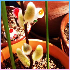 ✨🐱アカメヤナギ🐱✨ ねこちゃんは 難しいから、 ネコヤナギ 買ってもらいました! 切り花です! あおいちゃん ご満悦なのねー❣️ ネコヤナギは ヤナギの蕾でいいのかな? 🏷金曜日の蕾たち 参加します✨🐱 GSアダルトチームおつかれ様🍵