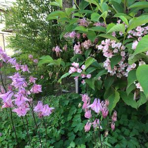 庭の一角にピンクのゾーンが現れました😄🌸🌸🌸 オダマキは種で凄く増えるので、同じ色が集まって集団になります😉