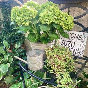 秋アジサイが咲き出しました♡ 去年バッサリ地際で切ったので、咲かないと思ってたけどお花つけてくれました こんな暑いのに。。。