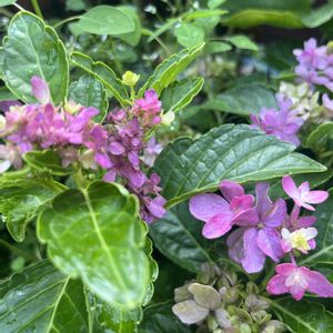 おはようございます☔️ 外気温は24℃ 今庭のお花たち🪴 紫陽花マルルーの鉢植えに枝垂れて咲くジュズサンゴ マルルーは何年ぶりかの開花 ジュズサンゴはこぼれダネから 二枚目のマルルーは火曜日のpic 🏷️美しく青きドヨウ 参加させて頂きます