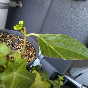 紫陽花。 恐らく隅田川ってお名前だったかな? 今年の梅雨にお花を頂いて、ダメ元で花後に挿し木にしてみた子🌱 ちゃんと頑張ってくれてる🥰