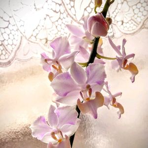 ミニ胡蝶蘭 去年9月にたくさん咲いていた 優しい藤色の胡蝶蘭 7月末に再び開花し始めて 今は7輪咲いています。 満開までもうひと息🥰✌️