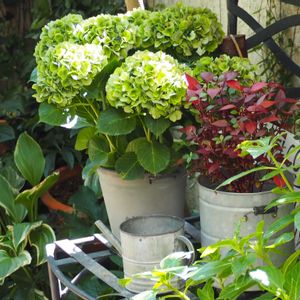 先日購入した紫陽花で作りました 赤いのはおたふく南天の葉です