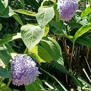 実家の紫陽花達🩷🤍💜 1枚目 一株だけピンク色🩷可愛いな😍 2枚目の白色🤍 アジサイとして 並んでるけど、明らかに 葉っぱ🍃と花🤍のつき方が 違うような気がする😅 もしかして 紫陽花の仲間の ノリウツギかもー お父さん〜わかってるのかなぁ?🤔