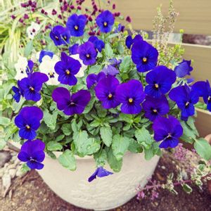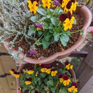 ビオラ寄植え コキアが終り 同じ鉢に植えました お花が大分 増えてきました🌱✨