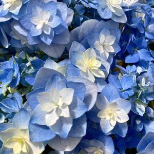 こんばんは 今日は土曜日だから、この一枚を。 ほんとに真っ青な紫陽花ですよね 我が家の名無しの一株の一房の花💙