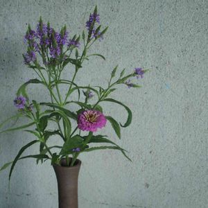 魔法の一輪挿し 昨年、秋に作った寄せ植え、何鉢かは解体せずに そのまま冬越し 春頃から徐々に芽吹き始めたのはいいのですが、葉っぱだけじゃ何の花なのかさっぱりわからない😅 その中の紫の花 たぶん宿根草 フジバカマやったかな🤔? 見る見るでかくなり、主役のプロフュージョンの植え付けを待ってくれない御様子 それならば、バッサリ切ってやりましょう🤨 せっかく紫の花が咲き始めてたので、この前のジニアの一輪挿しに生けてやりました😙 あら不思議!この花瓶は何を生けてもええ感じやん😊 この前の大輪カスミソウは、すぐ花が無くなってしまいました😓