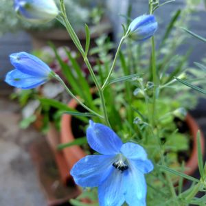 おはようございます🐦 バルコニーのデルフィニウム チアブルー🌿🤍💚🩵💙 7月5日に投稿した時から蕾が膨らんで、だいぶ青くなってきました✨☺️🥰😍 暑い日差しとシトシト☔とも仲良く、水はけの良い土に植えたからか…すくすくと花芽を出しています。 あまりザーザーと強く降る時は部屋に入れますが、毎日元気を貰っていて、感謝です💧💓🙏 月末に小さな手術をしなくてはならなくなった母のお世話に、これから行ってきます☺️ どうぞ 笑顔の一日を お過ごしください…😌🙏🩷🪻🩵💙 PS. この蕾のほかに あと2つの花穂が見えますか…?笑