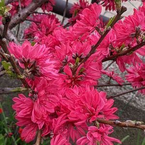 「菊桃紅」 桃とは思えない菊のような花です。 桜の花と同時に咲いてました。 大阪城公園内の桃園にて。