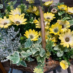 二子玉川のプロトリーフにあった寄植え。とってもかわいい配色で、この色のオステオスペルマムを探したのですがなかった。。残念。 こんなアレンジ作りたいなぁ。