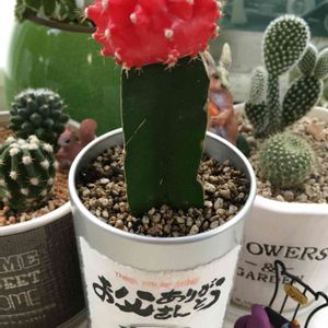 1週間前にお迎えした緋牡丹🌵 色と♥️フォルムが可愛いくて買ったけどあまり長生きしないそうです😢 葉緑素をもたないので単体では生きられないので柱サボテンを台木にして接木をしているそうです❣️ 知らなかったー😅 子吹いたら、増やすためには接木をしないとダメなんだって😆💦