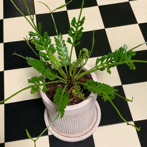 おはようございます。 寒の戻りで今日は肌寒い感じ。 プラスティックみたいな葉っぱのシダさんはお部屋の中でピョンピョン元気。 この子は葉の先からランナーが伸びて子株ができる可愛い子。