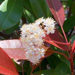 身体が鈍るのでお散歩。 公園には新葉が赤く綺麗なレッドロビンにお花が付いてました。 成長が早いのですぐに刈り込まれてしまうので、タイミングが合えばお花に会える。