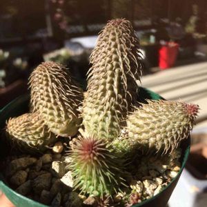 愛智園の『阿修羅』。 この阿修羅さんはフェルニア属の多肉さんになります(。・ω・。) この阿修羅さんは以前まではガガイモ科の多肉さんとして凄く有名な多肉さんでした。 ですが1998年にガガイモ科という科がなくなりガガイモ科に属していた多肉さんはキョウチクトウ科に含められました(。・ω・。) ですが(旧)ガガイモ科の多肉さん達はお花がとても個性的です。またその個性的な花から腐敗臭を出してハエなどの虫をおびき寄せたりする変わり者でもあり、他に類を見ない多肉さんとしてあまりにも有名になりました。 なので『お花が個性的なガガイモ科』というイメージが今でもなかなか取れずいまだにガガイモ科として売られていることが多いです(。・ω・。) またむしろガガイモ科という名前がもうないということ自体知らない人が多いのでは?と感じます! 育て方としては1年を通して優しい光をあててあげてください(。・ω・。) 半日陰や30%ほど遮光してあげた日光が理想的です(*´꒳`*) そして暑さと寒さにはそこまで強くありません!なので夏は多湿にならないように風通しを必ず確保し、冬場は最低でも5度を下回らないように管理してあげてください(*´꒳`*) またちょうど今の寒い時期は基本断水ですが、それですと冬を乗り越えられない子もいます。 なので月に一度ほど、あたたかい午前中に土の表面が湿るほどのお水やりをしてあげてください(*´꒳`*) そして春になってあたたかくなってきたら徐々に水やりを再開してあげてください(。・ω・。) このようにこの阿修羅さんを含む(旧)ガガイモ科の多肉さん達はとても個性的な生き方をしています(。・ω・。) なのでその生き様から私達人間が感じ取れること、気づけることは沢山あるように思います。 またキョウチクトウ科に変わった歴史を持っていたり、調べれば調べるほど面白い子がいっぱいいます(*´꒳`*) お花の腐敗臭が苦手だったり、その臭いで集まってくる虫が嫌で育てていない人もいます。 ですが逆にそこに魅力を感じ、この子達だけを育ててる人も同じくらいいます(*´꒳`*) 強烈な個性をもっているので好き嫌いがハッキリしてしまう多肉さんではありますが、そこがまた人間にそっくりで親近感を感じることもできると思います(。・ω・。) 自分という個性(主張)をもっていないで当たり障りなく流されていると敵を作らないですみますが、仲間もできません。 逆に自分という個性(主張)をもっていると敵は作るかもしれませんが、同調してくれる仲間が必ずできます。 (旧)ガガイモ科の多肉さん達は後者のタイプの人間にそっくりに感じて、周りからの批判や否定を恐れない芯の強さを感じます。 私達人間もみんな違った命で、異なった意思をもっています。それを主張することは時に不安になったり恐さを覚えたりするかもしれません。けれどブレない自分をもつことで新しい仲間と出会えたり、輪が広がっていったり、ポジティブなことが沢山生まれる種になってくれると思います。 なので(旧)ガガイモ科の多肉さん達は個人的にとても芯がしっかりした最も大人な多肉さんだというイメージがありますσ^_^;笑 長くなってしまいましたが、そんな生き様を魅せてくれる(旧)ガガイモ科の多肉さん達は彼らにしかない魅力が沢山あります(*´꒳`*) なのでもし興味をもっていただけましたら、どこかで見かけた際に気にかけていただけたら嬉しいです(*´꒳`*)