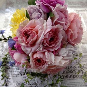 ٩(*´︶`*)۶おはよ〜♬ 秋薔薇が可愛いく咲いて花束💐にしてみました🌹 今月も宜しくお願いします💓♥️
