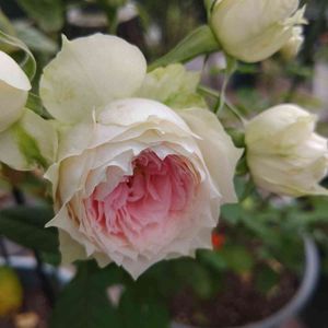薔薇ホワイトクリスマス 軒下の薔薇達が、次々に咲き始めました。秋の薔薇の始まり?💕
