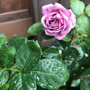 薔薇プラムパーフェクト 雨の中でも、咲いてくれるなんて 健気ですね💕 シュートも出て新葉がわさわさ!強いわ〜💓💓