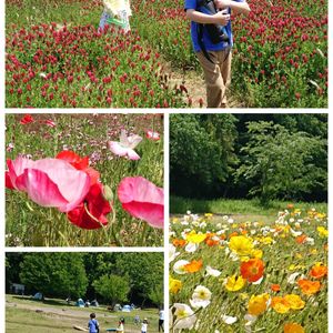 こどもの日🎏 近くの 「21世紀の森とひろば」は自然尊重型の都市型公園 みどりの里には ポピーやクリムソンクローバーが一面に咲き その中に遊歩道があり自由に散策できます 孫たちは 蝶々や蜜蜂を見つけ 蜜蜂のお腹の花粉団子を見て大騒ぎ🐝 ザリガニ釣りをしている親子 水遊びをしている子供達で一杯でした 捕まえた蝶々もトンボも 逃がしてあげました🦋👋
