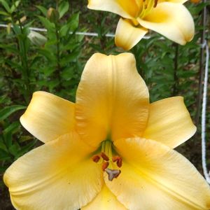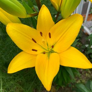 洋ユリ、でしょうか。黄色いですね。教えてくださいませ。⬅️「スカシユリ、透百合」ですね🎵教えて頂きありがとうございました🎵 黄色の花言葉は、注目を浴びる、飾らぬ美、ですね。