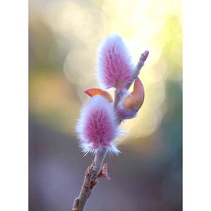 ふっくらしてきたピンクのネコヤナギ♫ 秋にホームセンターから救出してから、ずっと待ってたんだよー٩(^‿^)۶