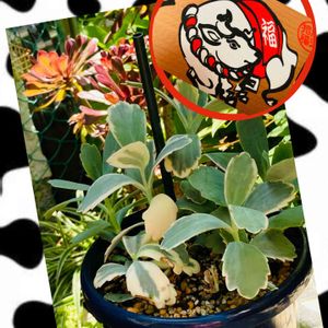 おはようございます🙋♀️ バドミントン🏸応援📣中💪 次は卓球🏓📣 🏷牛の日 柴犬小夏チャマ企画 🏷錦の日 みらいチャマ企画 ダブル参加よろしくね💕 我が家の牛🐄を探してみました! 見つけた! いえ─イヽ(●´∀`)ノ【ハイテンション】 12干支揃った絵馬の牛年で参加🐄 💚錦は 胡蝶の舞錦 あんまり伸び過ぎたから💦 朝一番に✂️で挿してみました🪴 胡蝶の舞はカランコエ属で、夏に生育する典型的な夏型の多肉植物。夏の暑さには強いから大丈夫かな🙆♀️