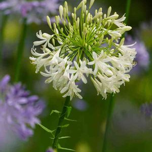 ブルーに隠れてひっそりと🎵 白いアガパンサス💕 目を引きますねぇ😉❤️