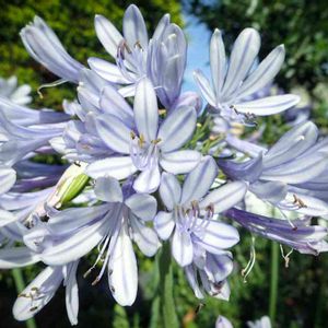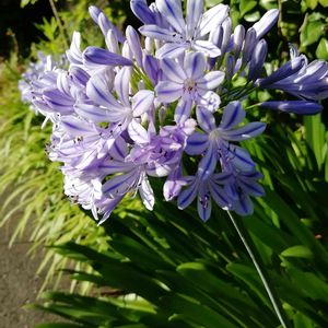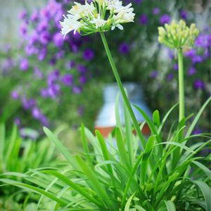 放射状 涼やかに咲く アガパンサス 💜手がかからない常緑種ヒガンバナ科の多年草。 葉がクンシランに似ていることから、和名はムラサキクンシラン。 根詰まりするため、3~4年ごとに株分けするのが良いらしい。 秋になったら、今年こそ株分けしたいと思っています。