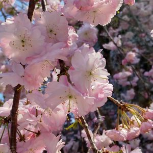*桜* しだれ桜の真ん中で… 下から撮影 桜ひらひら、晴天の中 やっぱり外は気持ちいい
